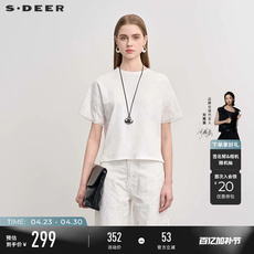 sdeer圣迪奥夏装女装圆领绣花不规则开叉白色短袖T恤S25280108