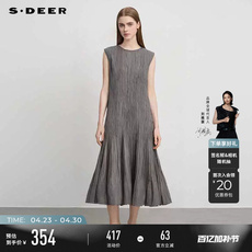sdeer圣迪奥夏装女装时尚圆领褶皱两件套无袖连衣裙S25281256