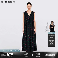 sdeer圣迪奥夏装女装装度假风V领碎花无袖连衣裙S25281229