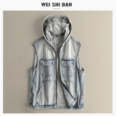 春秋夏牛仔马甲男欧美高端怀旧复古拉链背心无袖坎肩机车夹克外套