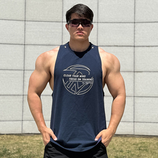 速干透气弹力运动背心男健身衣无袖坎肩圆摆肌理纹肌肉撸铁狗潮牌