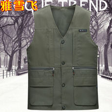 春秋装摄影钓鱼马甲中老年爸爸装纯棉多口袋马甲背心中年男坎肩