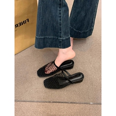 内包头半拖鞋女夏季外穿编织镂空罗马鞋仙女度假坡跟厚底凉拖