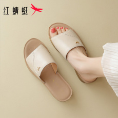 红蜻蜓坡跟妈妈拖鞋2025夏季新款女鞋一字拖真皮软底中年女士凉拖