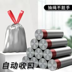 抽绳垃圾袋家用手提式加厚特厚免撕厨房卫生间银色批发钢袋大号