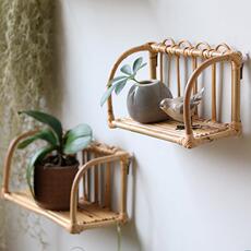 藤编落地置物架墙上壁挂家用客厅小型双层收纳书架北欧ins原木风