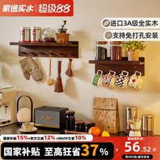 墙上置物架实木壁挂创意门厅挂衣钩带隔板衣帽架层板免打孔收纳架