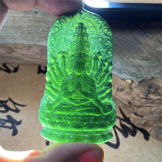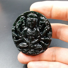 天然岫玉墨玉千手观音吊坠保真精雕本命佛玉石挂件男女款产地直发
