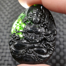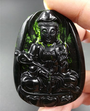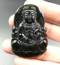 正品天然a货墨翠本命佛墨玉翡翠生肖八大守护神冰种玉石观音吊坠