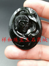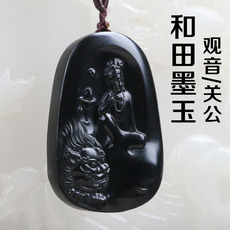 A货 天然玉石新疆和田墨玉 深工立体观音挂件吊坠牌子
