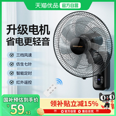 电风扇摇头静音壁扇店铺家用壁挂式拉线遥控学校餐厅铝叶大风力