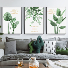 现代简约客厅装饰画植物花卉沙发背景墙挂画奶油风小清新三联画芯