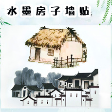 新中式水墨房子墙贴国风毛毡茅草屋教室黑板报文化装饰壁饰背景墙
