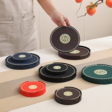 知舍茶具织锦杯垫双面布艺圆形隔热杯托茶壶垫直径约8cm传统纹样