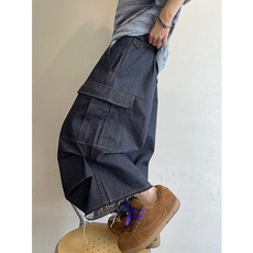 美式复古解构明线多口袋工装短裤男女设计感阔腿裤牛仔七分裤潮牌