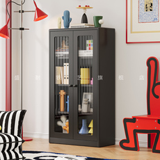 书架落地矮书柜复古风客厅玄关家用收纳置物柜带门防尘储物柜子
