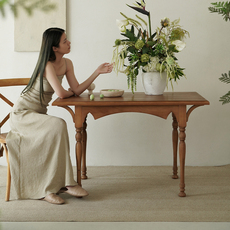 onlythis法式复古长方形实木餐桌家用玄关台茶桌原木猫耳桌书桌子