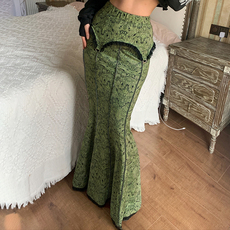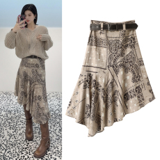 不规则半身裙2025秋新品附腰带复古波普风腰果花纹荷叶边中长裙女