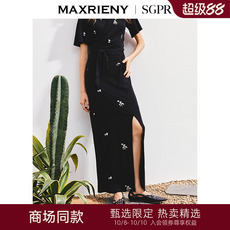 【商场同款】MAXRIENY复古优雅感开叉半身裙扭结高腰包臀长裙25秋