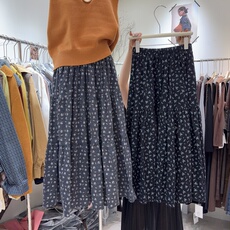 韩版秋冬时尚复古磨毛棉厚实碎花半身裙女松紧显瘦蛋糕裙中长裙子