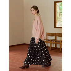 韩系复古圆点灯芯绒半身裙女秋冬A字中长裙波点蓬蓬裙学院风裙子