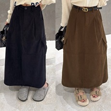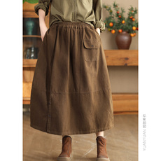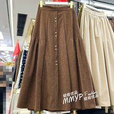 韩系复古灯芯绒立体花朵盘花半身裙女A字冬长裙