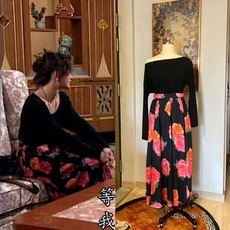 定制款 火玫瑰 温碧霞同款复古玫瑰印花显瘦碎花裙半身裙高腰长裙