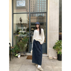 婉甸2025年秋季新品复古靛蓝丹宁长裙极简风牛仔半身裙1243K13MD4