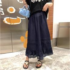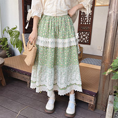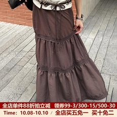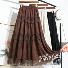 Amyway蕾丝拼接复古白色飘逸长裙 显瘦A字大摆蕾丝花边半身裙女