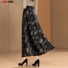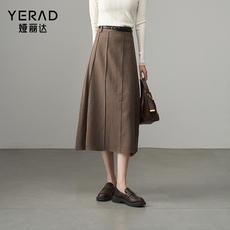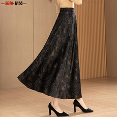 娅丽达复古丝绒半身裙女2025春秋新款遮胯伞裙高腰a字裙中长裙子