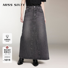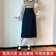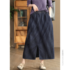 园园美衣秋款复古炒盐水洗牛仔裙时尚前开叉显瘦半身裙莱赛尔长裙