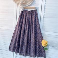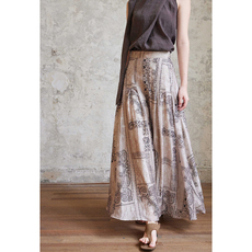 a字棉麻大摆裙中老年妈妈女装长裙民族风复古印花中长款半身裙 夏