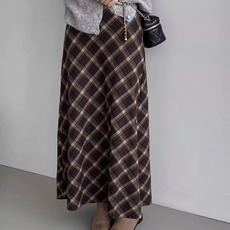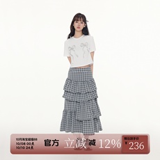 [商场同款]森马半身裙女格子伞裙复古风2025新款秋季A字长裙显瘦