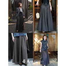 若芙|【瑞士黑巧】复古文艺显瘦A字伞裙秋季过膝半身长裙女