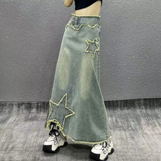 大码胖mm美式复古不规则牛仔半身裙女夏季辣妹设计感破洞中长裙子