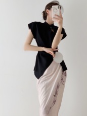 贰羊设计【似梦】新中式清冷系A字半身裙女夏高级感复古印花长裙