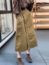 日系复古大口袋工装半身裙女夏季新款高腰遮胯显瘦开叉a字中长裙