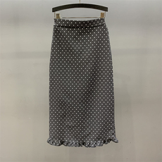 灰色西装半身裙女2025新款复古波点木耳花边显瘦高腰开叉包臀长裙