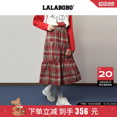 【商场同款】LALABOBO25年秋新款中长裙女复古格纹半身裙