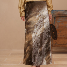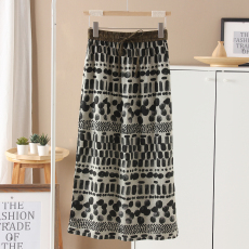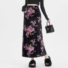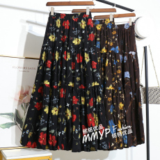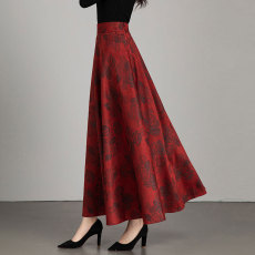 2025秋冬新款百搭复古印花半身裙女中长款高腰a字大摆裙气质长裙