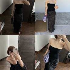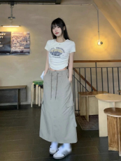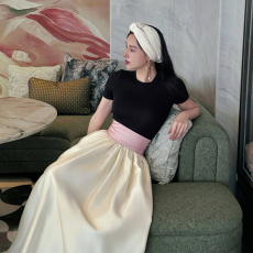 77复古花苞高腰纯色针织半身裙女H79669夏秋系带包臀一步中长裙子