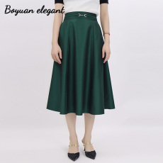 柏媛墨绿色百褶半身裙女复古轻奢高级感高腰遮肚长裙a字大摆伞裙