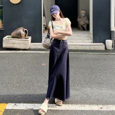 深蓝色牛仔半身裙女夏季2025新款高腰复古中长裙显瘦直筒包臀裙子
