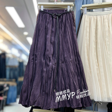 复古紫色绑带褶皱大摆半身裙秋季2025年新款高腰显瘦垂感百褶长裙