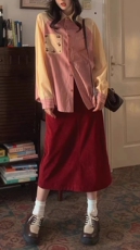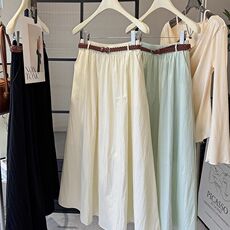 【清仓】9820 薄款口袋百褶裙半身裙春夏高腰复古休闲a字裙中长裙