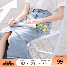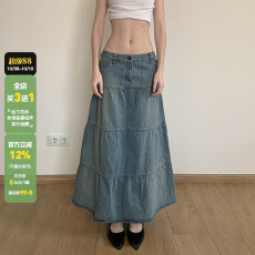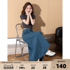 唐狮25夏季春装半身裙女高腰分割时尚显瘦复古牛仔长裙字女W