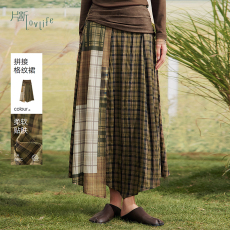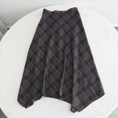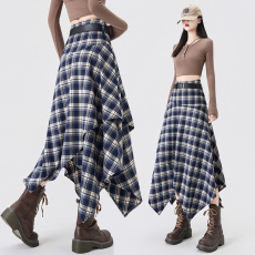 秋冬复古不规则裙摆格子半身裙女2025新款设计感格纹拼接大摆长裙