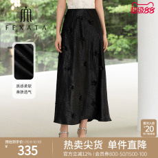 FEXATA斐格思2025夏季新品肌理感复古提花立体花朵半身裙黑色长裙