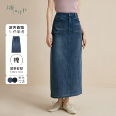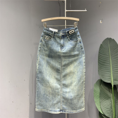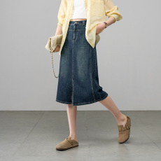 2V-20早秋款复古牛仔半身裙高腰显瘦气质直筒开叉包臀中长裙H25-9