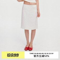 SECRET DINDI 夏日星空 木耳拼接碎花半身裙女夏季复古显瘦中长裙